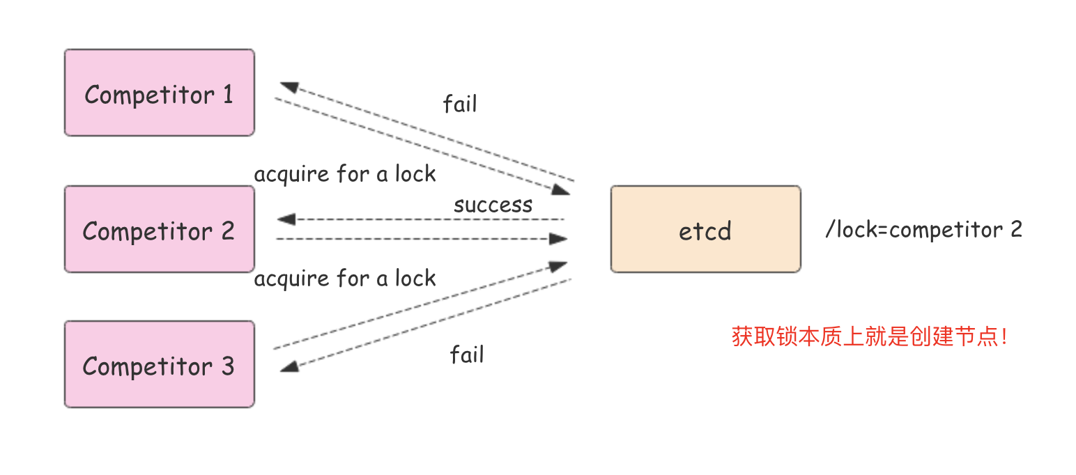保持独占即所有获取锁的用户最终只有一个可以得到。etcd 为此提供了一套实现分布式锁原子操作 CAS(CompareAndSwap)的 API。通过设置prevExist值,可以保证在多个节点同时去创建某个目录时,只有一个成功。而创建成功的用户就可以认为是获得了锁。