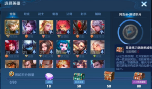 而皮肤宝箱需要80个测试积分,意味着你需要完成80位英雄的任务才能拿到皮肤宝箱。