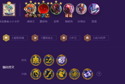 3-2上6启动,小搜一波,保证凑齐阵容,德子两星,就不会太弱了,然后卡着50慢慢追3,三星月多越好,追出3到4个三星后,可以留猫猫,7人口补个猫猫。