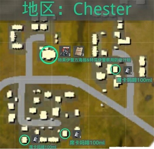 3、神秘甜点的任务需要大家找到席卡吗啡100ml*3,他们的具体位置如下所示;