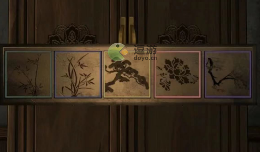 10、点击房间门,挂上【门环】,注意看灯笼亮起的顺序:左右左左右右左左和灯笼上的字:拂云、垂露、怒发、浮香)