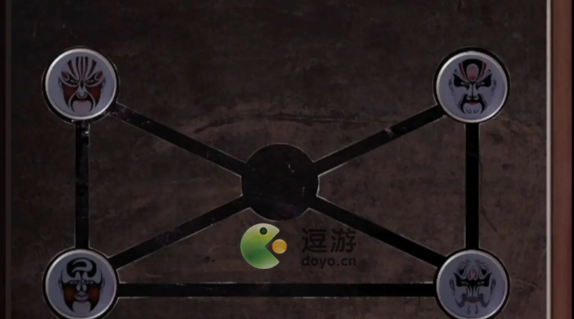 3、切换场景,到戏台,掀开布,根据柜子上扇子和椅子上信息顺序解开柜子密码,得到【羊角锤】
