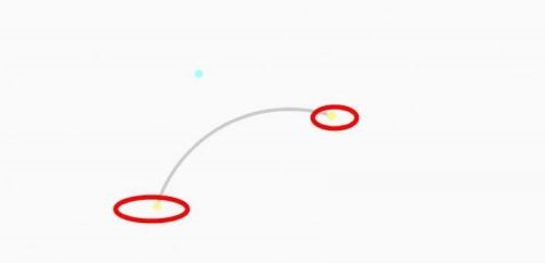 2、然后按住鼠标左键在画面上可以绘制圆弧,圆弧的两头会出现带黄色的圆点,这时候拖动圆点可以改变圆弧的方向和长短。