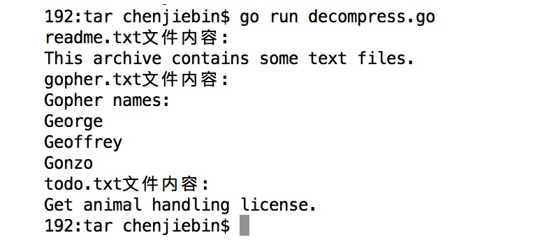 fmt.Printf("%s文件内容:n", hdr.Name)