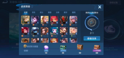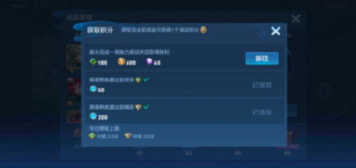 每个英雄都有三个任务,三个任务全部完成并领取奖励后,即可获得1个测试积分。