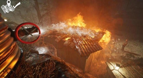 地图右下角这里院子中找Sgt.Flint对话,他想让主角帮自己扑灭大火。