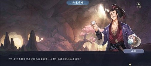 2、接着大家前往山寨前哨与山贼对话并且开启战斗,战斗结束之后我们前往山寨的大厅;