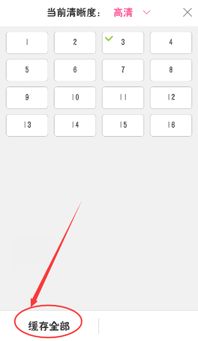 如果需要缓存全部的剧集可以直接点击页面底部的【缓存全部】