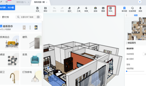 点击户型图上方的工具栏中的导出,如下图。